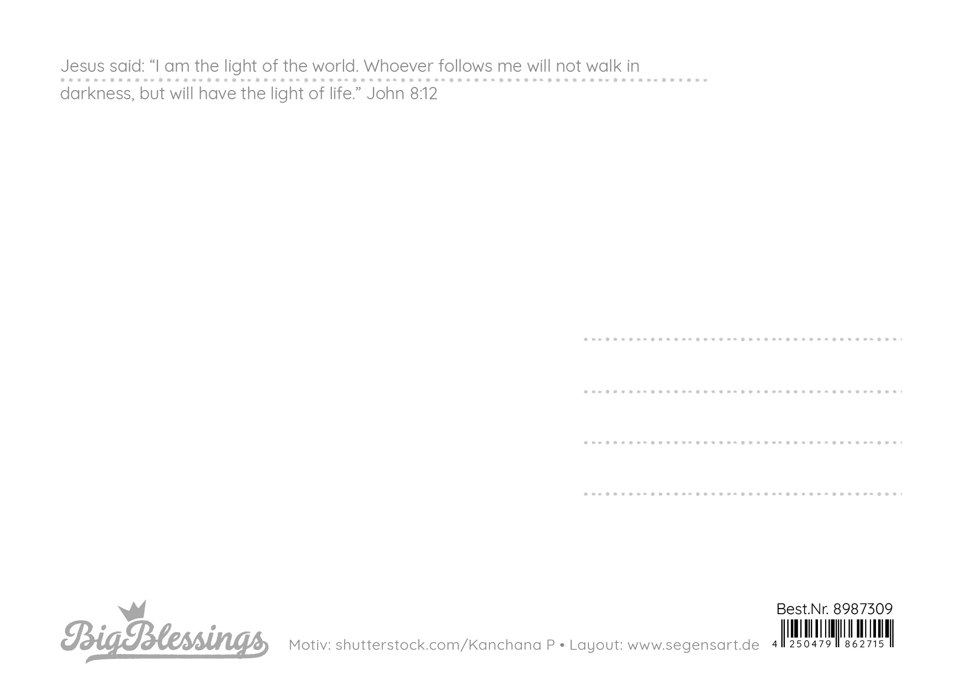 Jesus said: “I am the light of the world. Whoever follows me will not walk in darkness, but will have the light of life.”