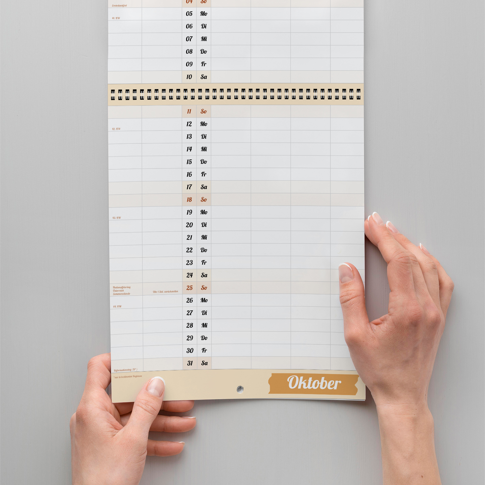 Maße aufgeklappt: 29 cm breit und 69 cm hoch, Spiralbindung