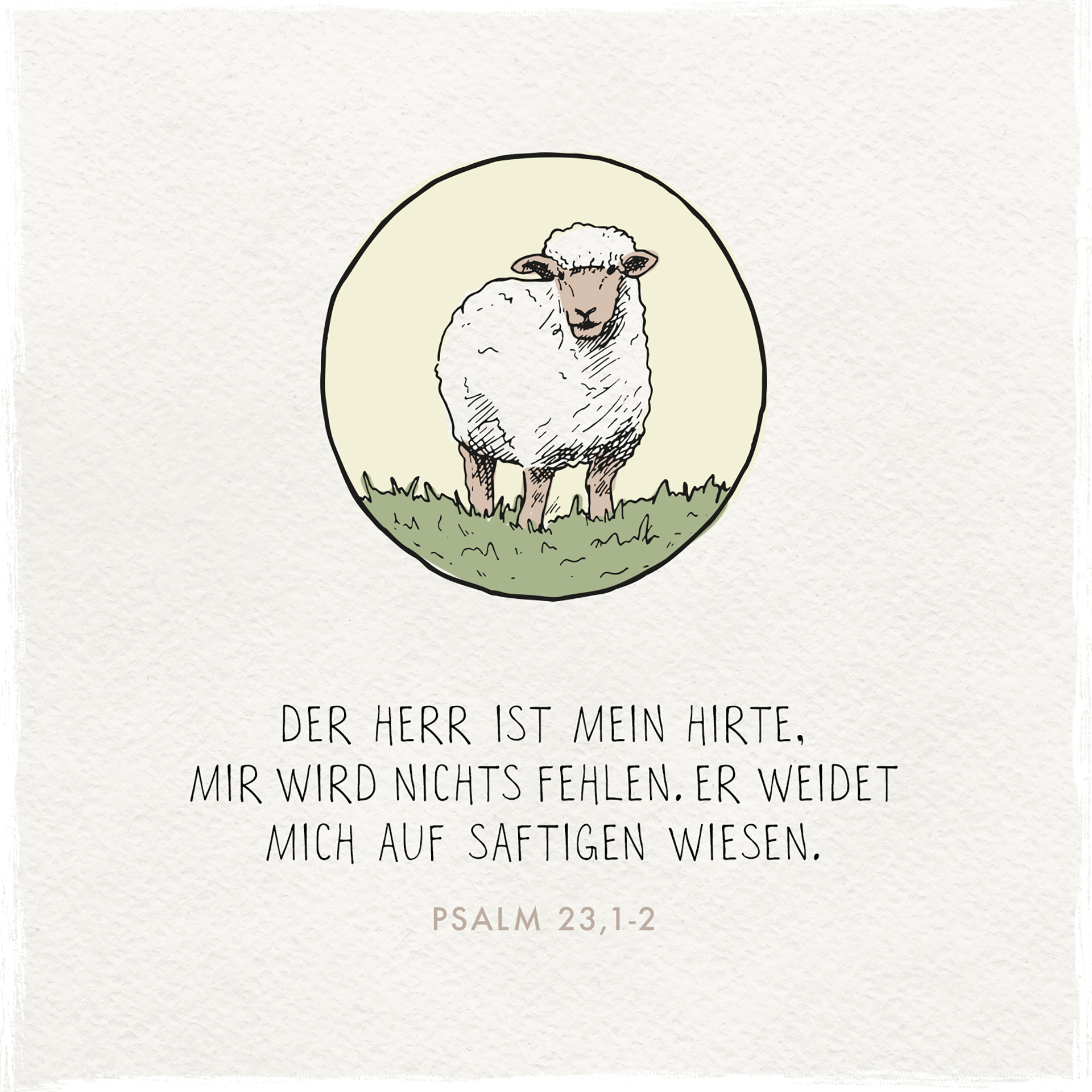 „Der Herr ist mein Hirte, mir wird nichts fehlen. Er weidet mich auf saftigen Wiesen.“ — Psalm 23,1–2