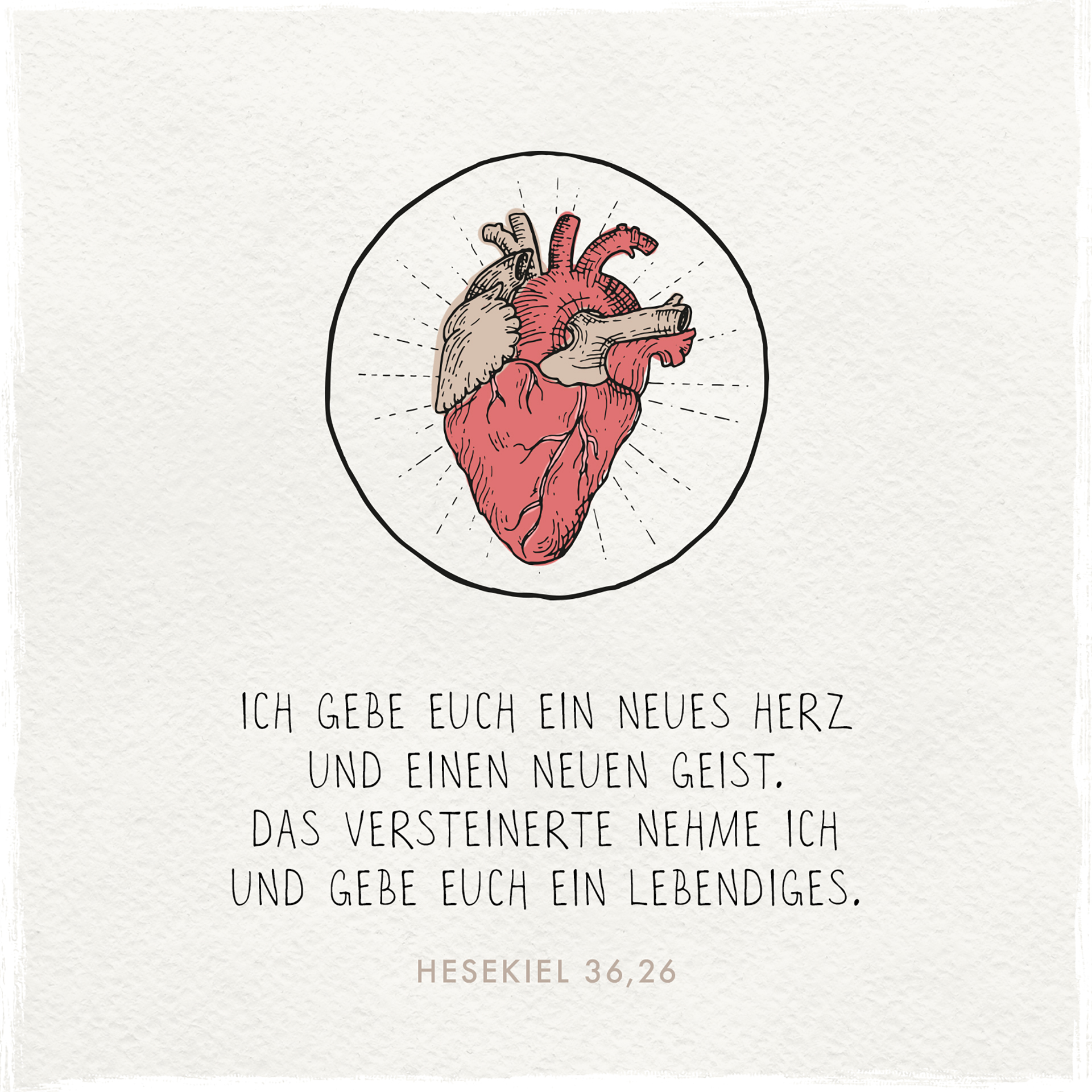 „Ich gebe euch ein neues Herz und einen neuen Geist. Das versteinerte nehme ich und gebe euch ein lebendiges.“ — Hesekiel 36,26