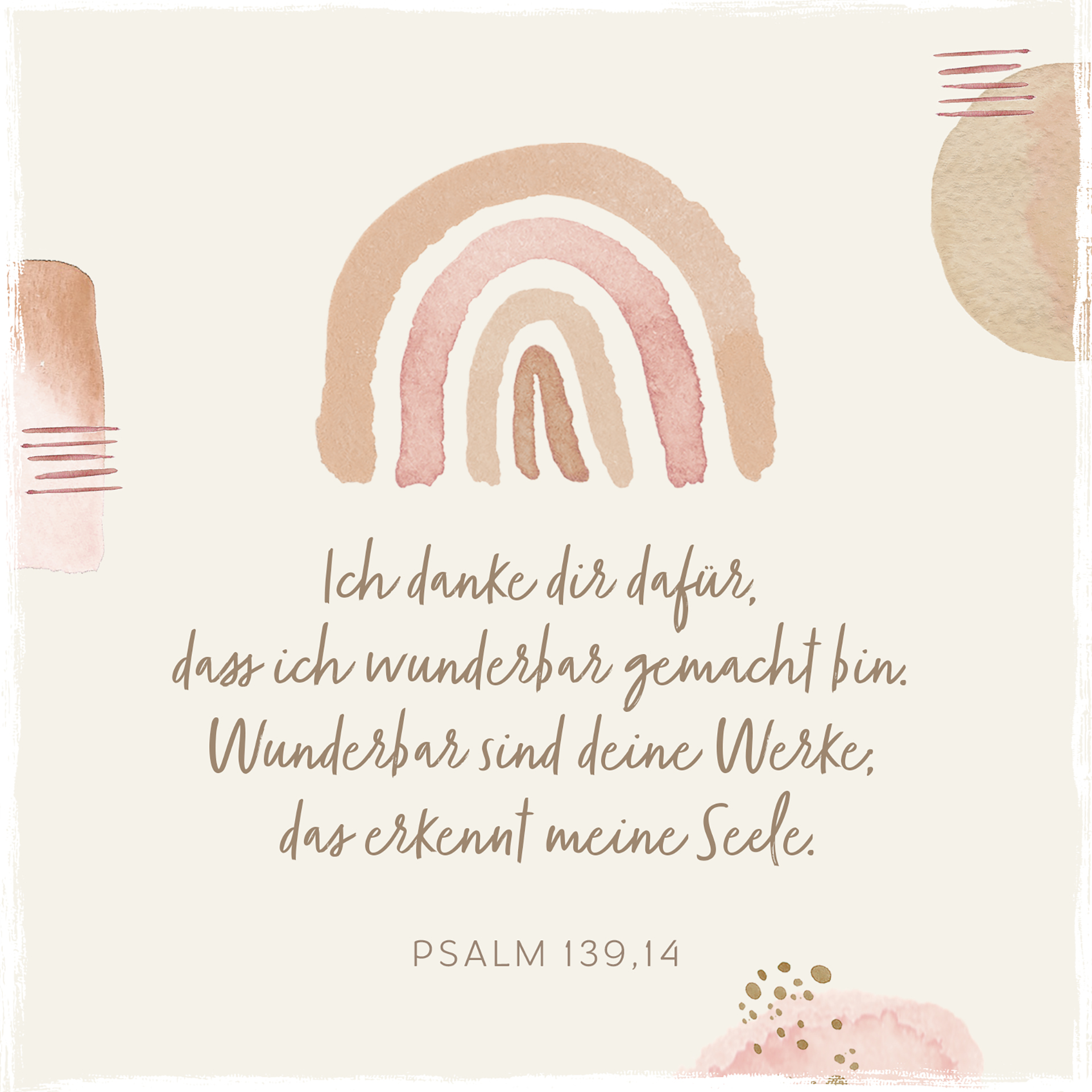 „Ich danke dir dafür, dass ich wunderbar gemacht bin. Wunderbar sind deine Werke; das erkennt meine Seele.“ — Psalm 139,14