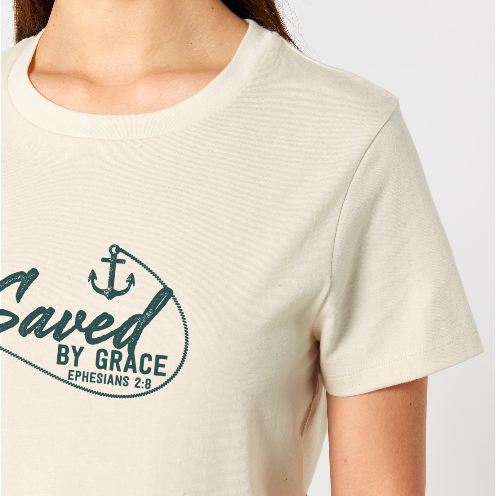 Eine klare, kraftvolle Botschaft: Aus Gnade gerettet. Dieses naturbelassene Shirt bringt eines der zentralsten Statements des Glaubens schlicht und doch stark auf den Punkt. Das maritime Design mit Anker erinnert an Halt, Sicherheit und ein festes Fundament – ideal für Alltag, Veranstaltungen oder als Geschenk.