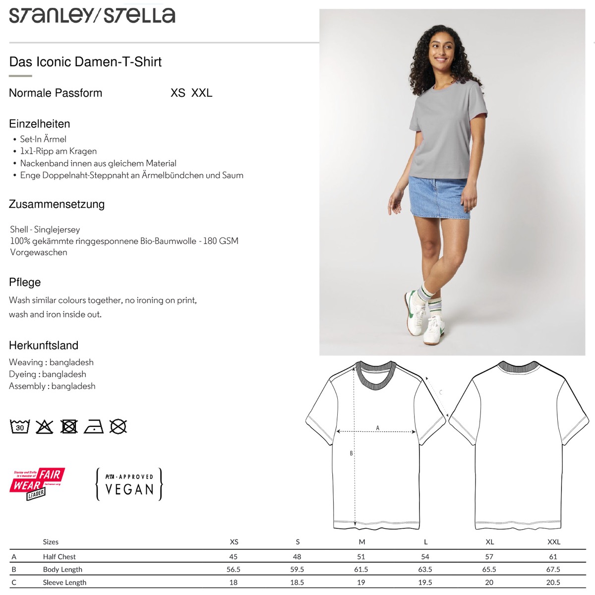 Eigenschaften: Singlejersey 100% gekämmte ringgesponnene Bio-Baumwolle Vorgewaschen 180 GSM Das Stella Muser ist unser Premium Blanko Damen-T-Shirt. Dank seines zeitlosen Designs und klassischen Schnitts ist es ein echtes Must-Have für Frauen aller Altersgruppen und Körperformen. Neue Stoffentwicklung bedeutet, dass dieses zeitlose Damen-T-Shirt nicht nur herausragenden Komfort und Passform bietet, sondern auch ausgezeichnete Bedruckbarkeit. Es besteht aus 100% Bio-Baumwolle aus kompaktem Ringgarn, was eine überlegene Qualität und eine noch bessere Oberfläche für Dekoration bietet. Wenn du lieber eine längere Schnittform eines Shirts bevorzugst, kannst du gern mit uns in Kontakt treten. Dann haben wir eine Alternative für dich.