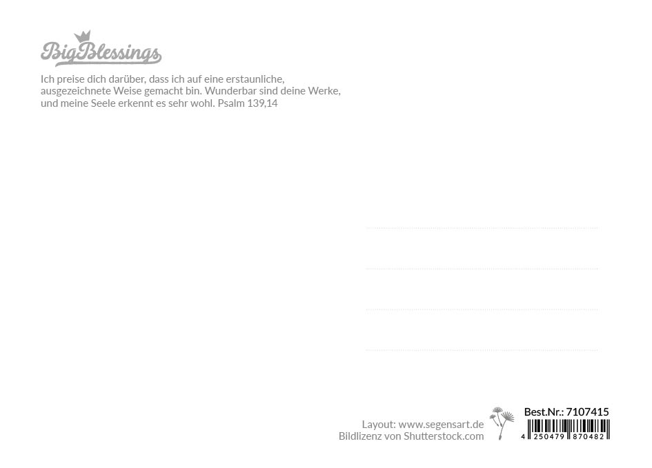Text auf der Rückseite: Ich preise dich darüber, dass ich auf eine erstaunliche,