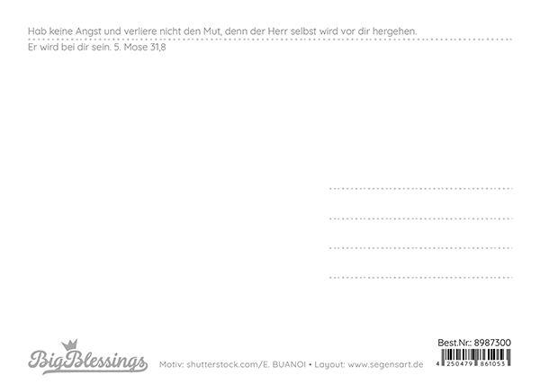 Hab keine Angst und verliere nicht den Mut, denn der Herr selbst wird vor dir hergehen. Er wird bei dir sein.