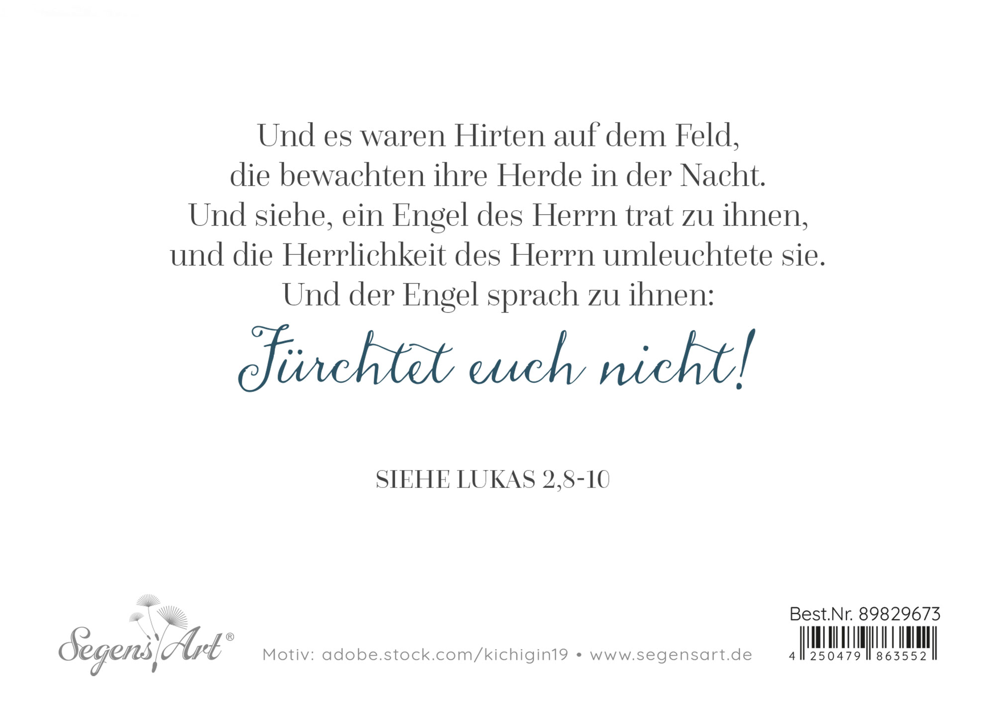 Und es waren Hirten auf dem Feld, die bewachten ihre Herde in der Nacht. Und siehe, ein Engel des Herrn trat zu ihnen, und die Herrlichkeit des Herrn umleuchtete sie. Und der Engel sprach zu ihnen: Fürchtet euch nicht!