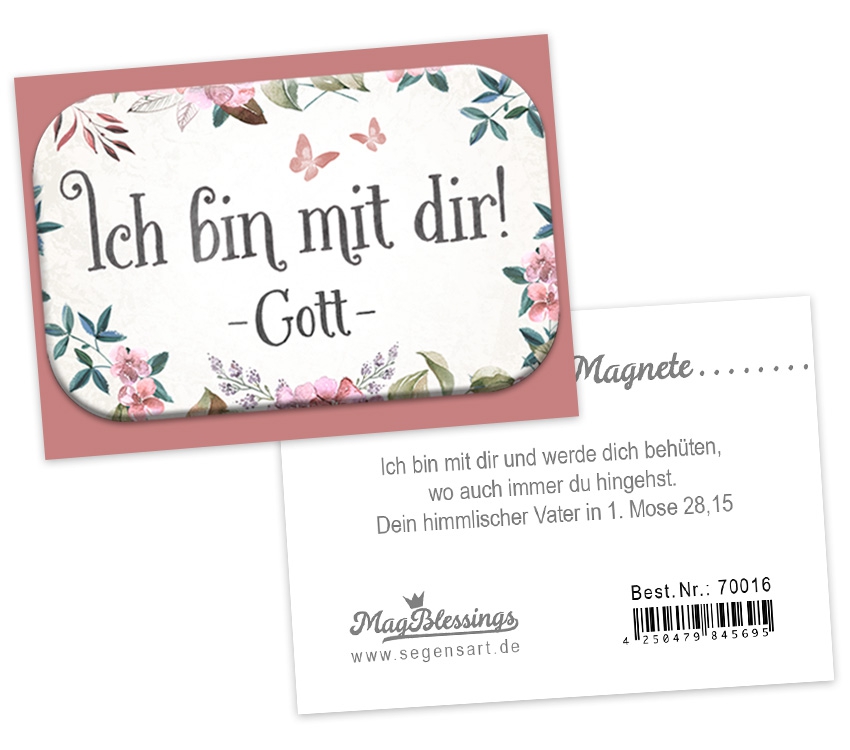 Der Magnet und ein farbiges Kärtchen mit Bibelzitat auf der Rückseite sind zusammen in einer Folie verpackt.
