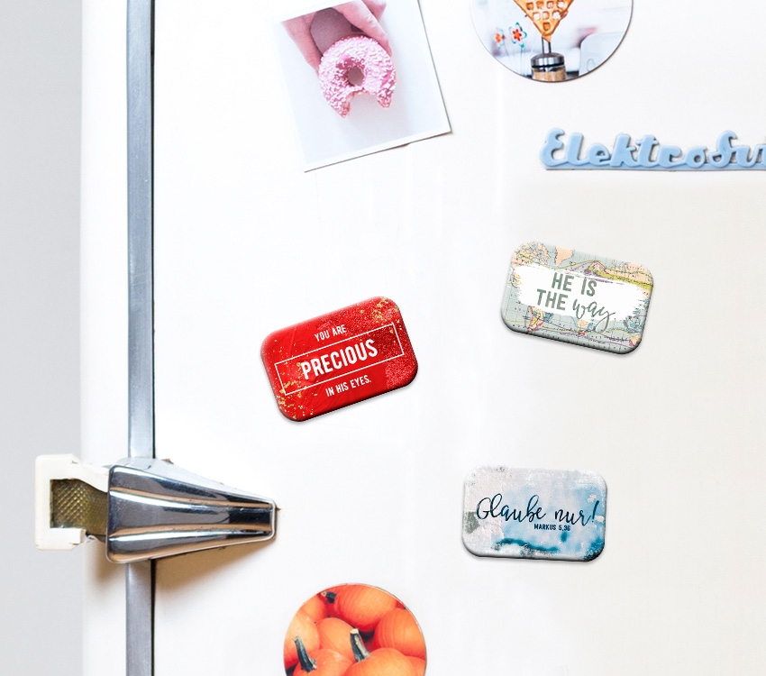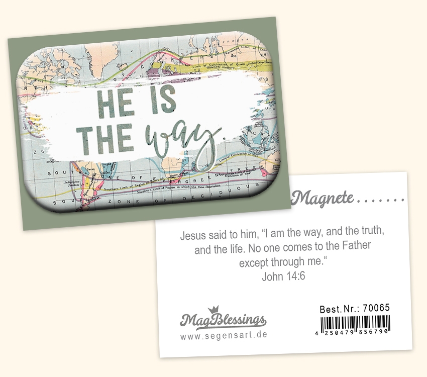 ist das Motiv des Magneten zu sehen, auf der Rückseite befindet sich ein passendes Bibelzitat.