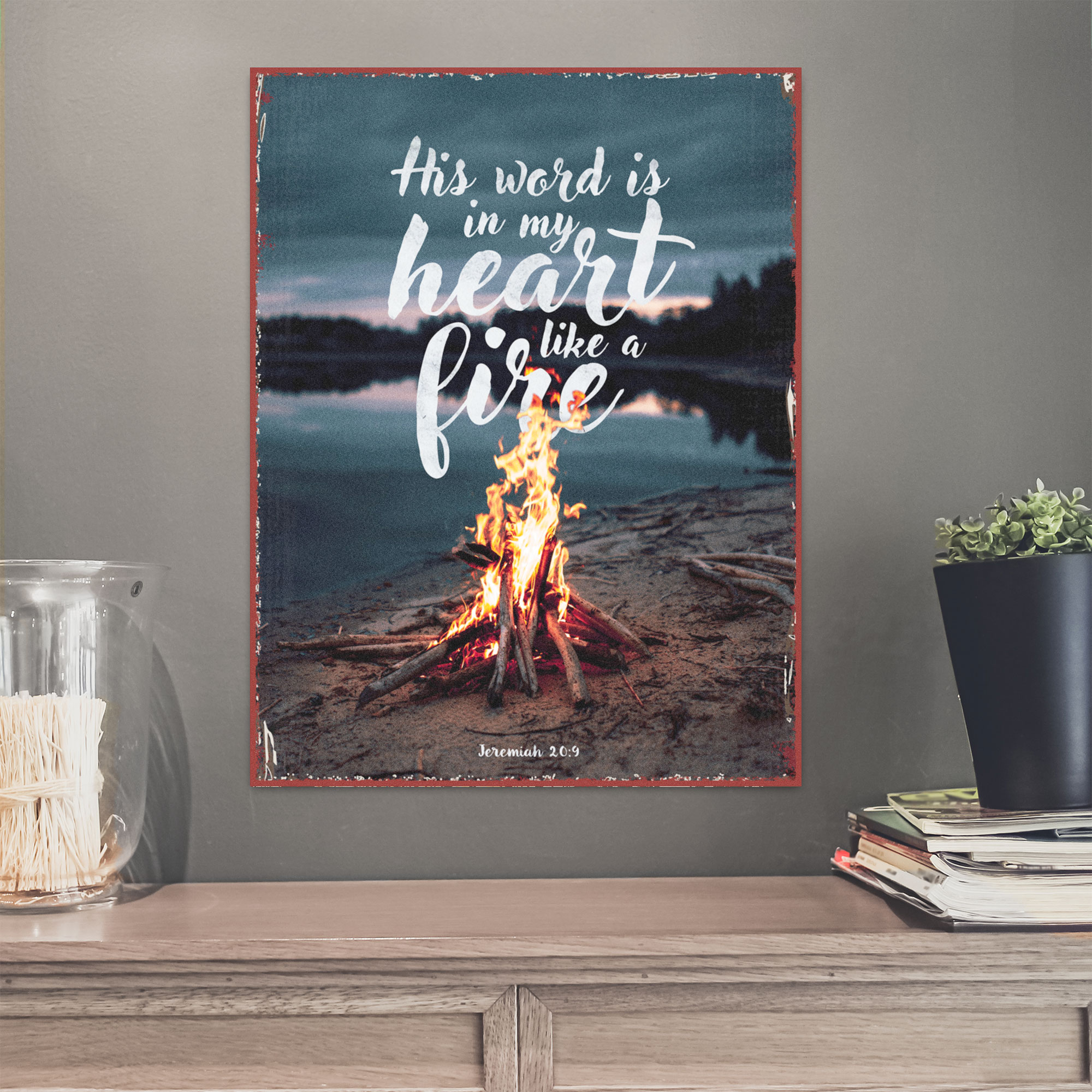 Metallschild im Vintage-Look im Format 27 x 35 cm, für trockene Innenräume geeignet, zum AufhängenHandmade - Die Metallschilder werden hier vor Ort von uns produziert.Text:His word is in my heart like a fire.Jeremiah 20:9