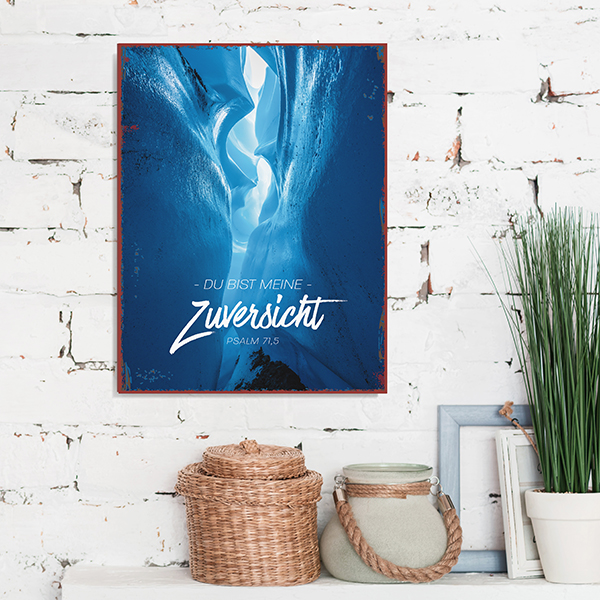 Metallschild im Vintage-Look im Format 27 x 35 cm, für trockene Innenräume geeignet, zum AufhängenHandmade - Die Metallschilder werden hier vor Ort von uns produziert.Text:Du bist meine Zuversicht.