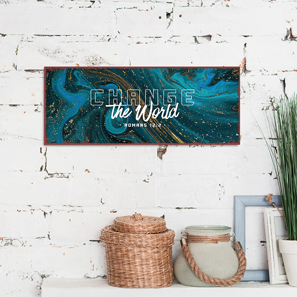Metallschild im Vintage-Look im Format 34,5 x 14 cm, für trockene Innenräume geeignet, zum AufhängenHandmade - Die Metallschilder werden hier vor Ort von uns produziert.Text:Change the world