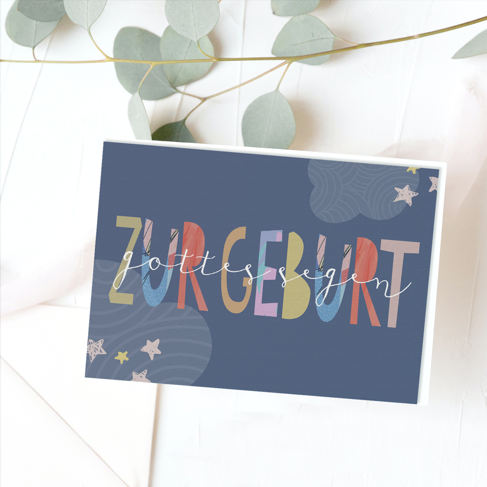 Eine liebevoll gestaltete Karte zur Geburt, mit sanften Farben, Mondsichel und Sternen. Die ruhige Illustration verbindet Wärme mit einem tröstlichen Bibelwort, das Frieden und Geborgenheit ausdrückt. Ein wunderschöner Segen für ein neugeborenes Kind und seine Familie.Text: