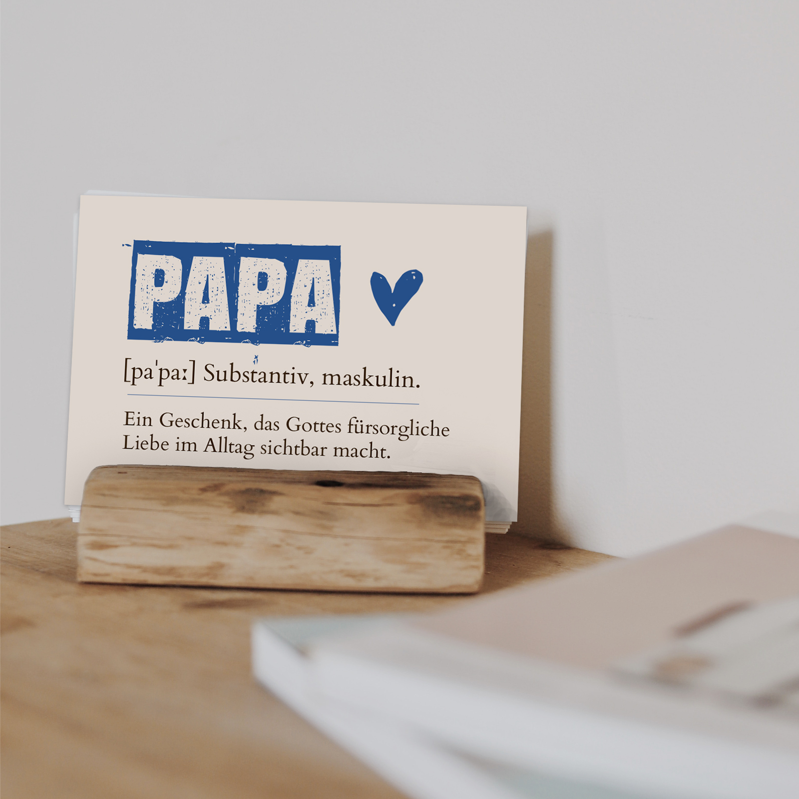 "Papa [paˈpaː] Substantiv, maskulin. Ein Geschenk, das Gottes fürsorgliche Liebe im Alltag sichtbar macht."