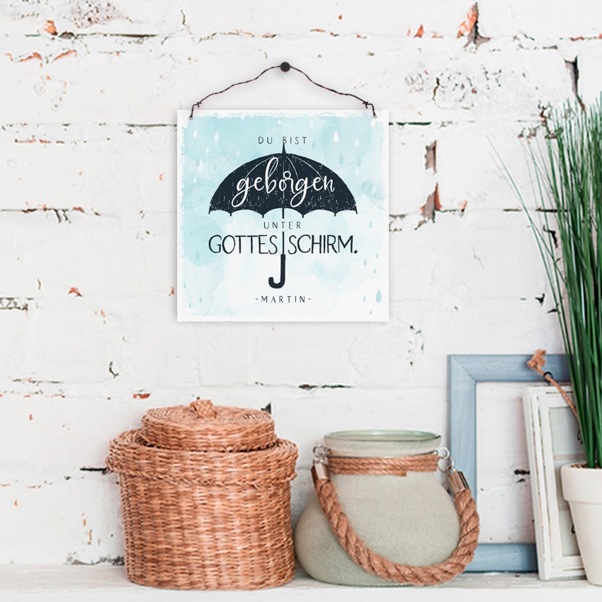 Persönliches Holzschild klein - Unter Gottes Schirm