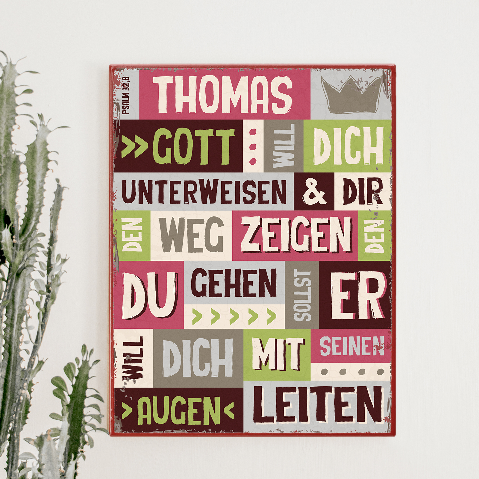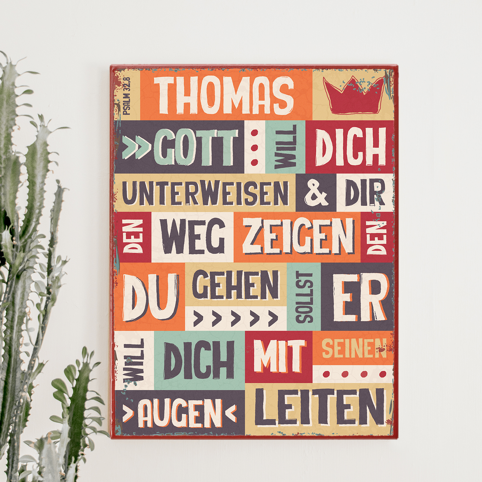Psalm 32,8 -Wunschname- Gott will dich unterweisen & dir den Weg zeigen, den du gehen sollst. Er will dich mit seinen Augen leiten.