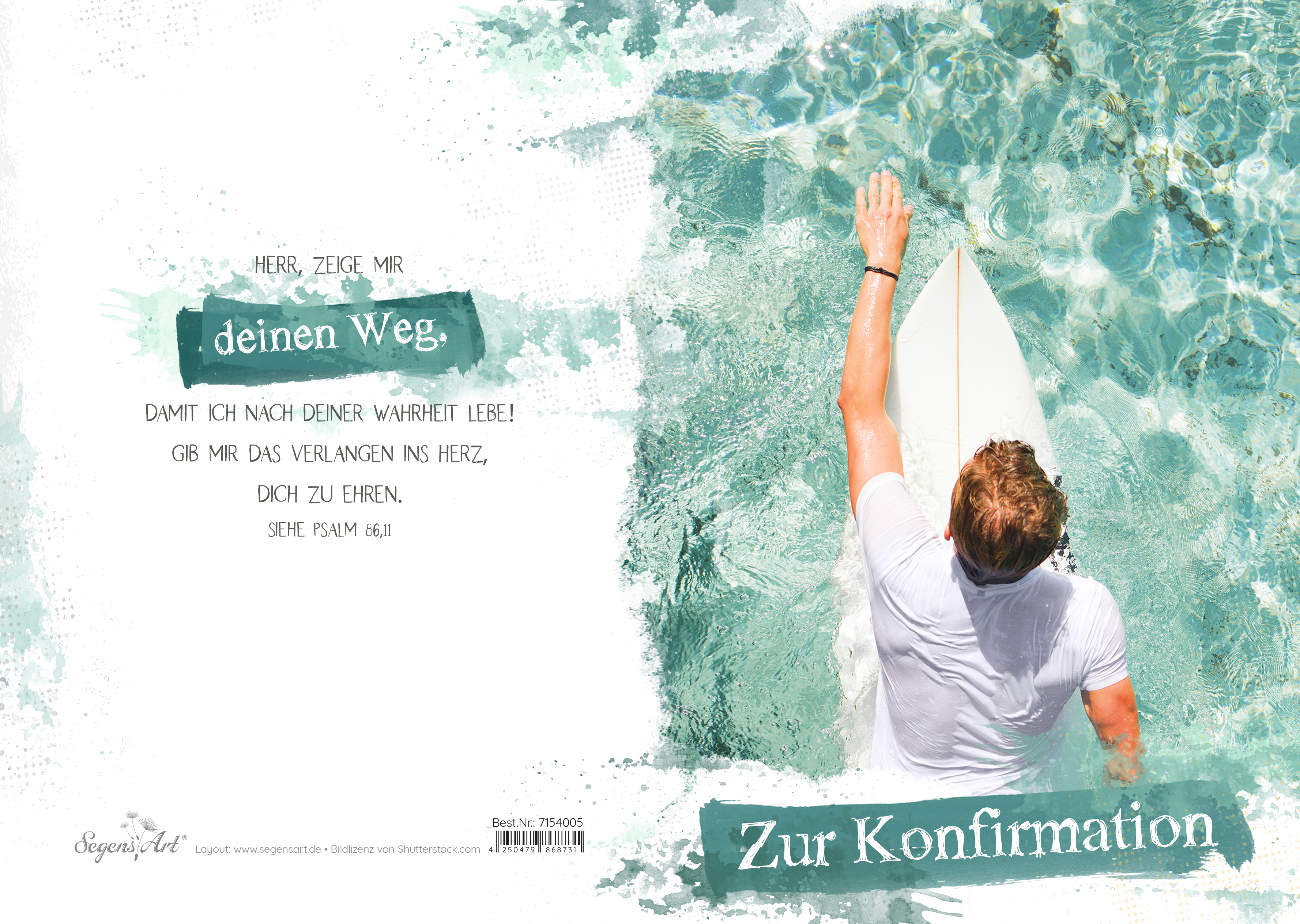 Urkunde – Konfirmation – Surfer-Faltkarte mit Anlass (und Text auf der Rückseite)