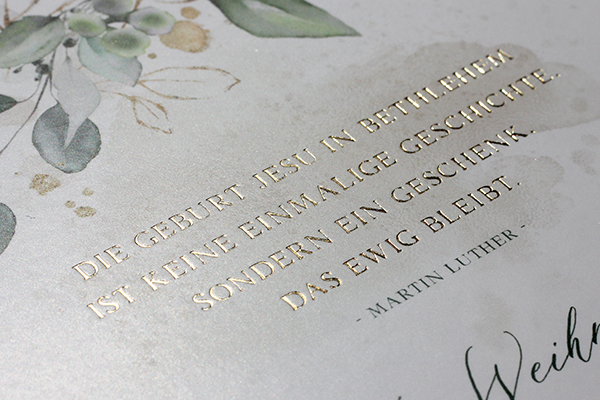 Große XL-Postkarte mit mit Goldfolienveredelung, XL-Format 16 x 11,5 cm.